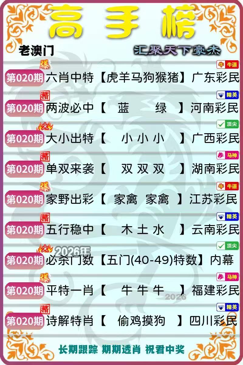 020期:[兔鸡猴猪鼠牛虎]开????准