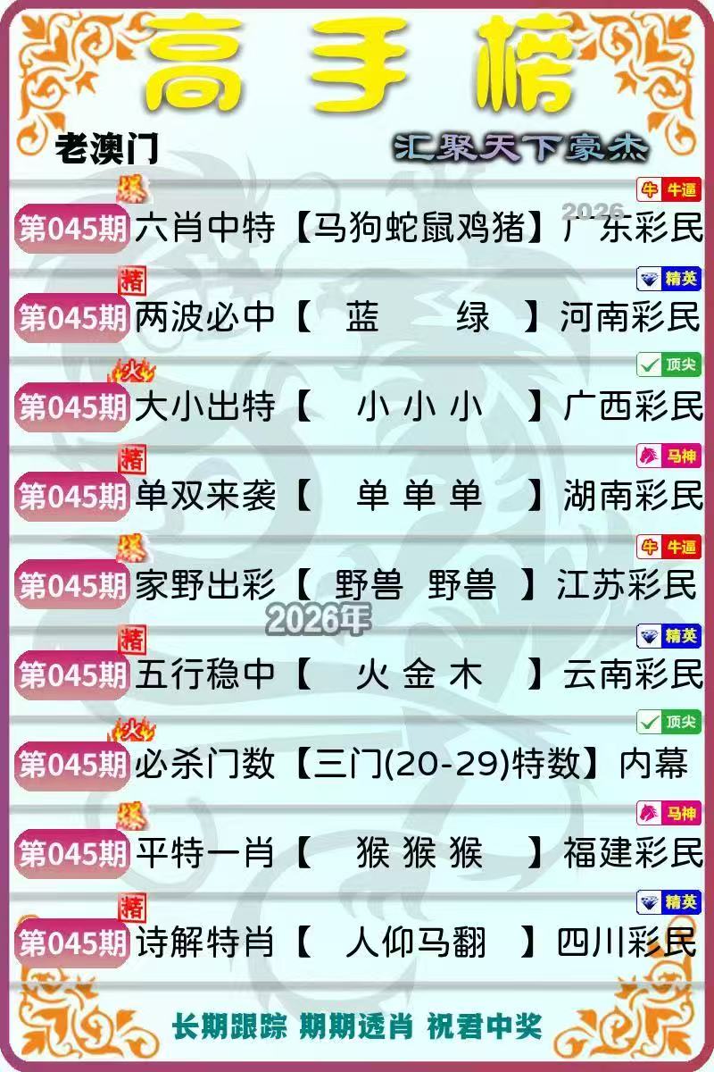 045期:〖龙羊蛇狗虎牛〗开:????准